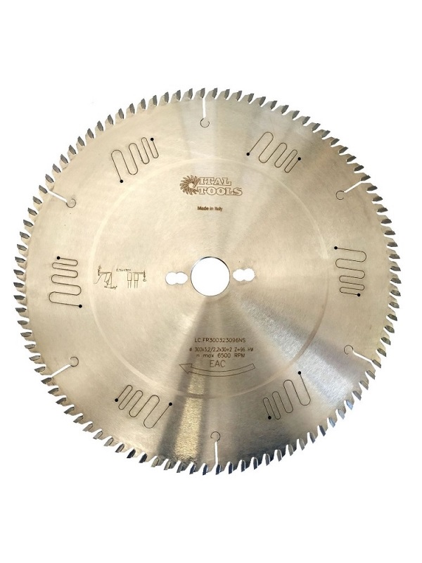 Lame circulaire carbure silencieuse pour la coupe de panneaux revêtus 2 faces.  Les avantages de la lame: Une quantité d'affûtages plus élevée grâce à une plus grande épaisseur des plaquettes avec une extension de la durée de vie de la lame. Coupe extrêmement précise, les lames sont construites avec des tolérances centésimales moyennant l'utilisation de meules diamant à grain ultra fin. Réduction du bruit et des vibrations: des fentes antivibration avec injection de polyuréthane thermoplastique permettent une diminution considérable des vibrations. Extension de la durée de vie de la lame jusqu'à 70%: un revêtement haute-performance et anticorrosion, appliqué sur tout le corps de la lame, sur une épaisseur d’environ 6 microns. La qualité anti-adhérente améliore l’éjection du copeau et réduit de manière notable l’accumulation de résine. Il protège l’outil pour toute sa durée de vie et réduit la friction pour une coupe plus précise.